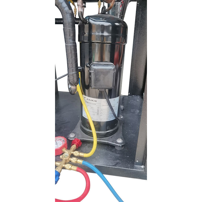 7. Kattava turvasuojaus: 1) korkea- ja matalapaineinen suoja ja jäähdytysjärjestelmän varoventtiili; 2) Pehmeä ja kova kaksoissuoja kompressorin ylikuormituksesta; 3) virtalähteen vaihehäviö, käänteinen, alijännite ja ylijännitesuoja; 4) Vesijärjestelmä Jäätymissuoja ja veden virtaussuoja.
